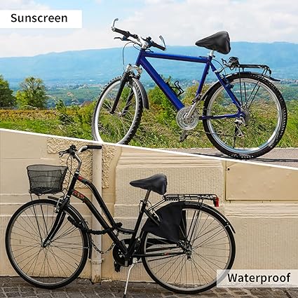 Protective Seats: ☔ Not only does it protect from rain, but the UV protection material also shields your seat from rain, dust, wind, and sunlight. This helps avoid scratches or stains on the saddle. Appropriate size for various bicycle seats.