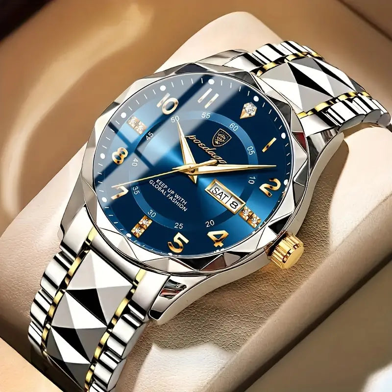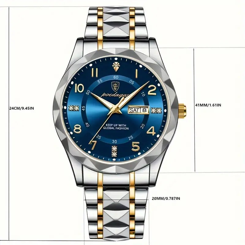 - ⭐️ Stylish Blue Dial: Rich, deep blue dial adds a bold yet elegant touch, perfect for a modern look.